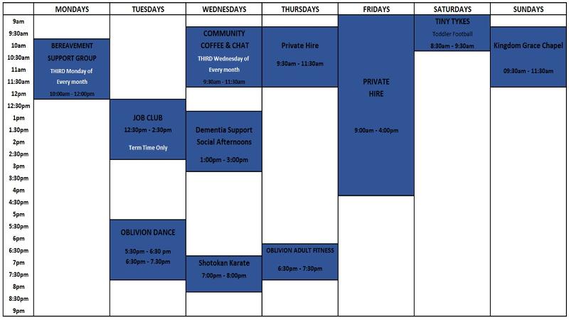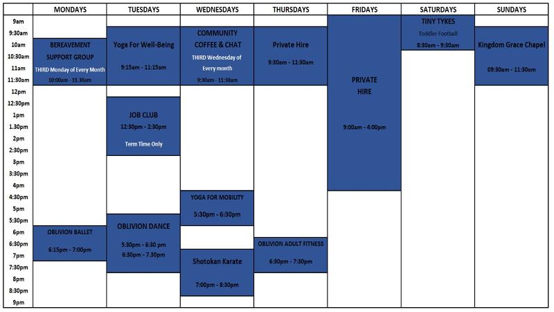 9am - 4:00pm PRIVATE HIRE - Hall is unavailable to hire.